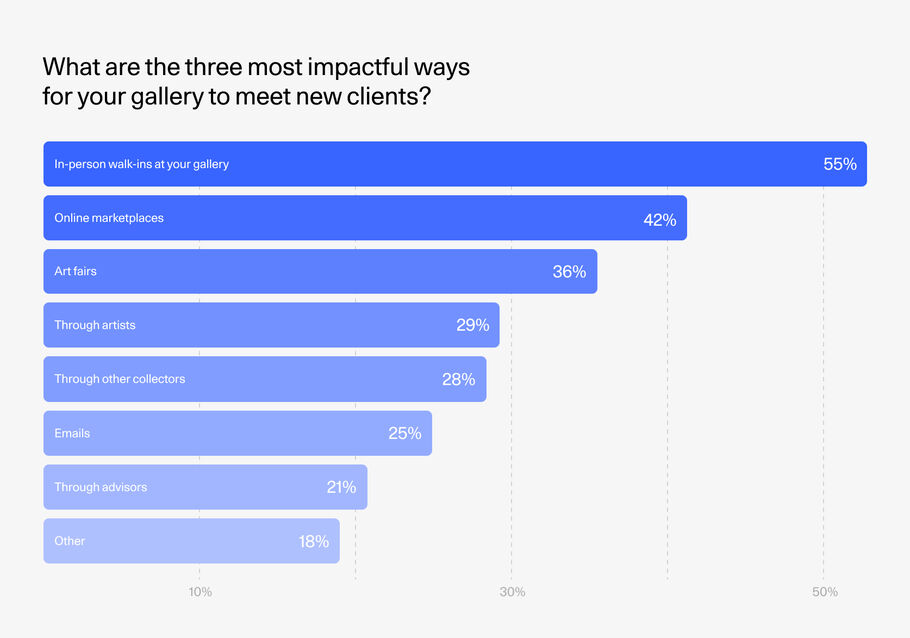 5. Online marketplaces outrank art fairs as an impactful way for galleries to meet new clients.