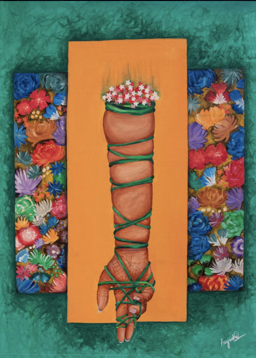 Aayushi Gupta is an international artist and muralist whose practice sits at the intersection of visual storytelling, social change, and environmental advocacy. Through evocative large-scale works, she addresses urgent global issues including climate change, gender equality, cultural preservation, and the vital role of Indigenous communities in safeguarding the planet. Rooted in a commitment to dialogue and connection, Gupta’s artistic journey seeks to bridge diverse audiences with complex global challenges, using art as both a reflective and catalytic force. Guided by a belief in art’s power to inspire awareness and action, her work transforms public and exhibition spaces into platforms for collective reflection and meaningful social impact.