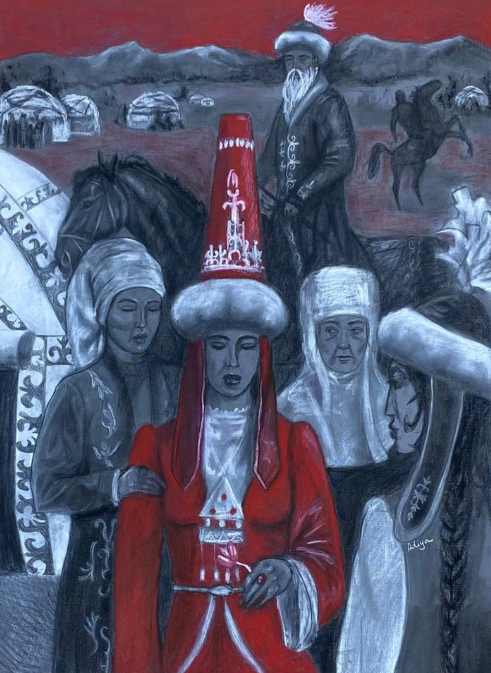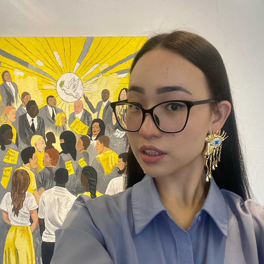 Adiya Kakim is a Kazakhstan-born artist, TEDx speaker, and activist whose multidisciplinary practice explores identity, cultural memory, and the fragile relationship between humanity and the natural world. Drawing from personal experience and social engagement, her work uses painting as a powerful tool for advocacy, addressing themes ranging from environmental degradation to child protection through the Tiny Defenders movement, which she leads as CEO. Kakim has exhibited at prominent institutions including the Military History Museum of the Republic of Kazakhstan and Nazarbayev University, as well as international festivals, and has collaborated with initiatives such as NU Poetry, NU Art Studio, and Green Society. Committed to accessibility and cultural dialogue, Kakim also offers free lectures on art history and continues to expand her impact through public speaking, education, and emerging media platforms.