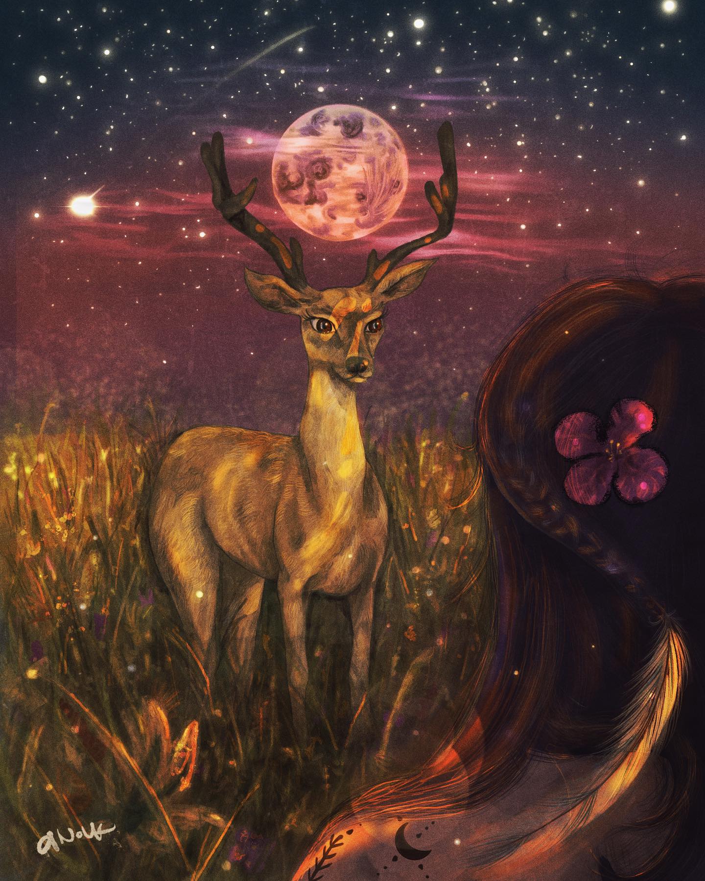 Anna (Anouk) Schmidt is an illustrator living and working in western Hungary, whose work explores the intuitive, dreamlike spaces between nature, memory, and mysticism. Introduced to applied arts at the age of six by a master painter, Anouk's creative path has been shaped by over a decade of classical guidance and a deep connection to drawing since childhood. Through her project Anouk Arts, she channels a meditative state where time, space, and form dissolve—inviting viewers into symbolic realms that bridge the known and the imagined. Her work is inspired by natural forms, constellations, Eastern philosophies, and the spiritual-cultural movements of the 1960s and 70s, drawing influence from figures like Carlos Castaneda, Syd Mead, and Hiro Isonoo.