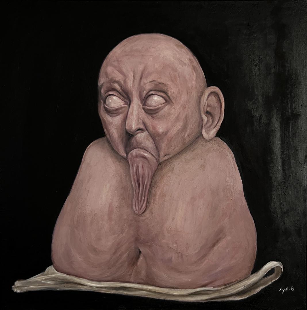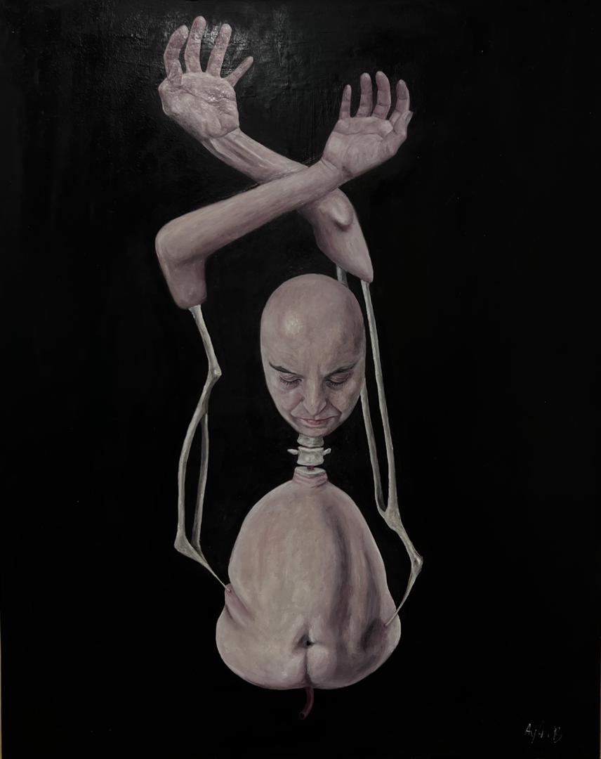 Aya Bennacer (b. 1997) is an Algerian artist who developed an early passion for culture and the arts, particularly literature. She studied French language and literature at the École Normale Supérieure in Constantine and spent several years teaching French at the high school level, while simultaneously developing a self-taught painting practice. Initially translating literary influences into drawings, her work evolved from illustrating texts into the creation of imaginative, original beings. Centered on the essence of humanity, her practice explores the transformation of flesh into material and its relationship to the societal garments we wear. Balancing familiarity with subtle strangeness, Bennacer’s work constructs a distinctive visual language that challenges conventional perceptions of gender and inner identity through innovative forms and deformations.