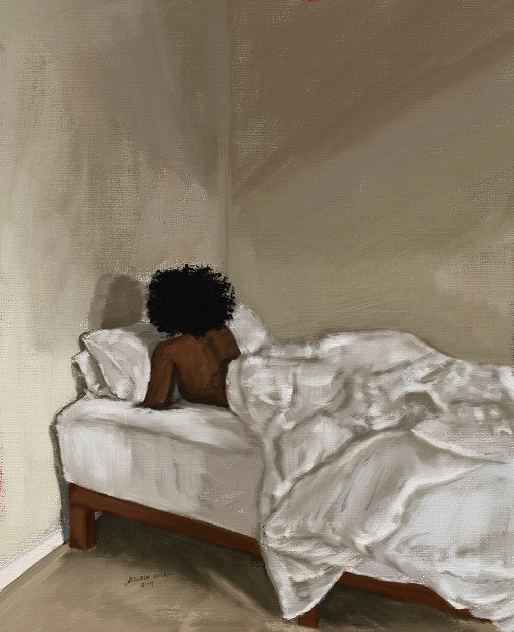 Bisola Michal (b. 1998) is a multifaceted Nigerian artist whose practice bridges traditional and digital mediums. Beginning her artistic journey in high school, she started selling pencil sketches at 15 and transitioned to oil painting after formal training in 2012/2013. She refined her skills at Yaba College of Technology, majoring in painting, and works across oil, acrylic, gouache, and mural art. Between 2016 and 2020, she pioneered Living Canvas, a technique that involves painting on live models and objects to create lifelike illusions. Beyond visual art, Bisola explores hair design and language learning, and since 2023, has embraced digital art and oil animation. Currently studying film production online, she continues to expand her multidisciplinary practice and innovative storytelling.