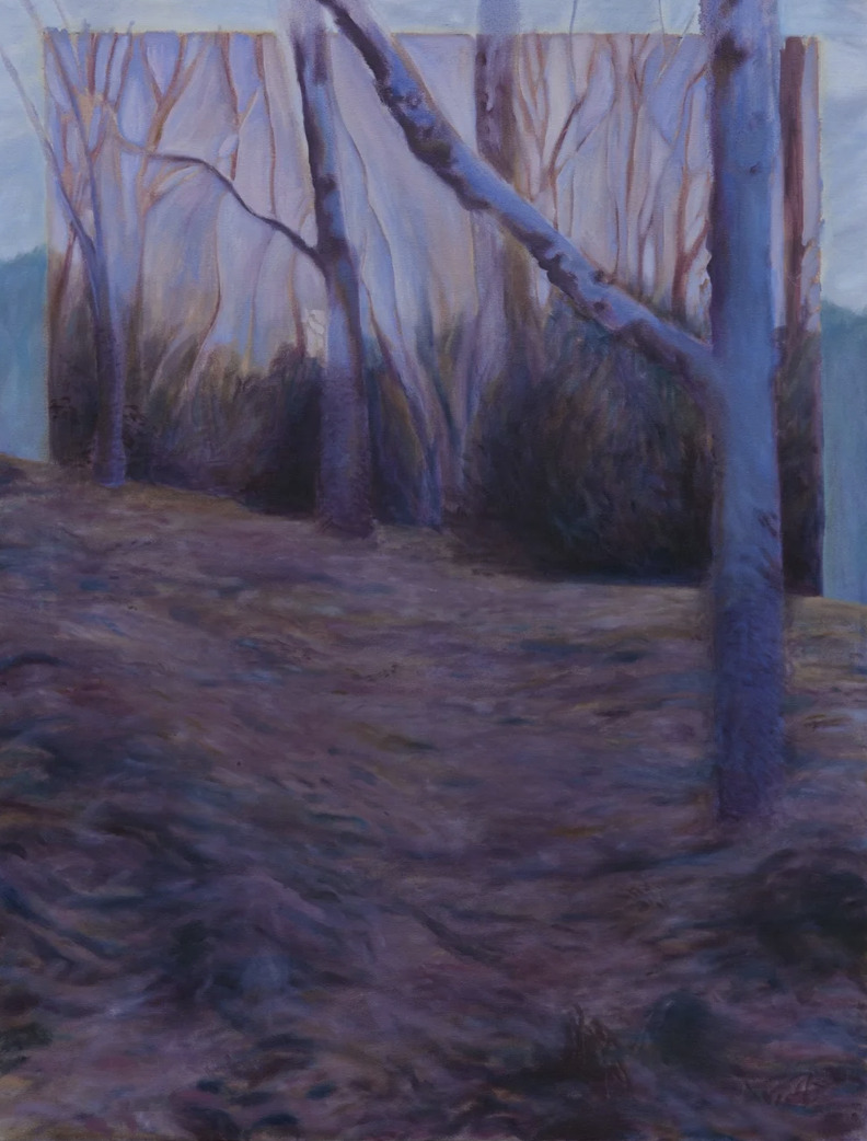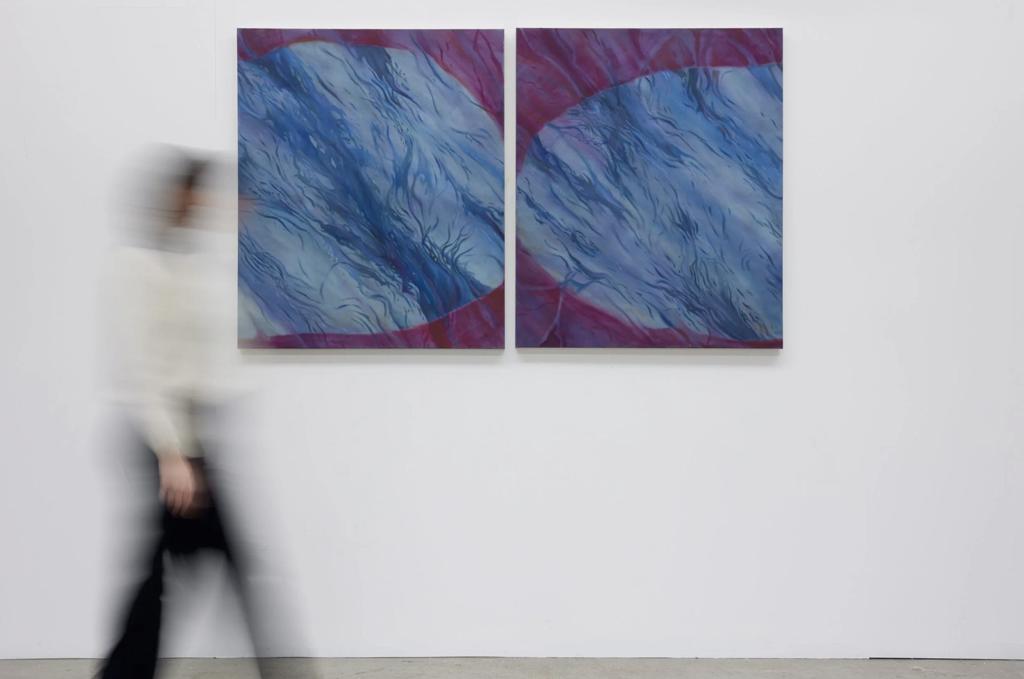 Aline Bittar Künzel (b. 1997, Brazil) is a Brazilian visual artist whose painting practice explores the shifting perceptions of landscape and human immersion within it. Working in ink, acrylic, and oil, her layered compositions examine the tension between the consoling and disquieting aspects of nature, often through elliptical, pond-like forms that emerge from intuitive, circular brushwork. Water serves as a central motif, reflecting both physical experience and philosophical inquiry inspired by Thoreau’s notion of the pond as “the earth’s eye.” Künzel’s multi-canvas works employ layering, cropping, and removal to navigate ambiguity of scale, inviting viewers into a contemplative space where intimacy, immensity, and the emotional resonance of landscape converge.