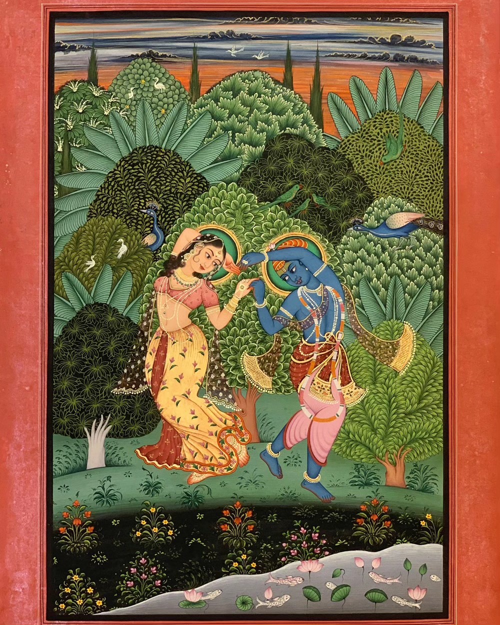 Dildar Qureshi, known as the youngest artist at the prestigious Kota-Bundi School of Miniature Art, carries forward the legacy of his father, renowned Kota artist Mohammad Waseem. Deeply rooted in tradition, Dildar works exclusively in the classical Kota-Bundi miniature style, preserving centuries-old techniques with remarkable dedication. He prepares his own natural pigments from stones, minerals, gold, silver, and kathir, and crafts handmade wasli paper through traditional layering and polishing methods — processes that infuse his work with authenticity and longevity. Through his intricate brushwork and symbolic compositions, Dildar breathes life into the rich storytelling heritage of Rajasthan’s miniature art, ensuring that every bird, plant, and figure he paints holds deeper meaning. For him, this art form is not merely a craft, but a way of life and a tribute to his cultural roots.