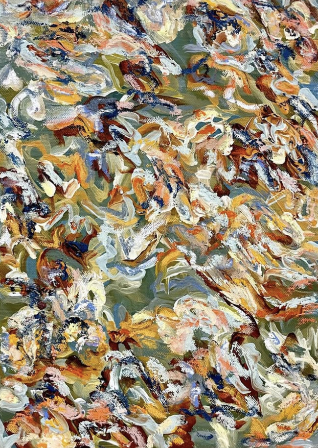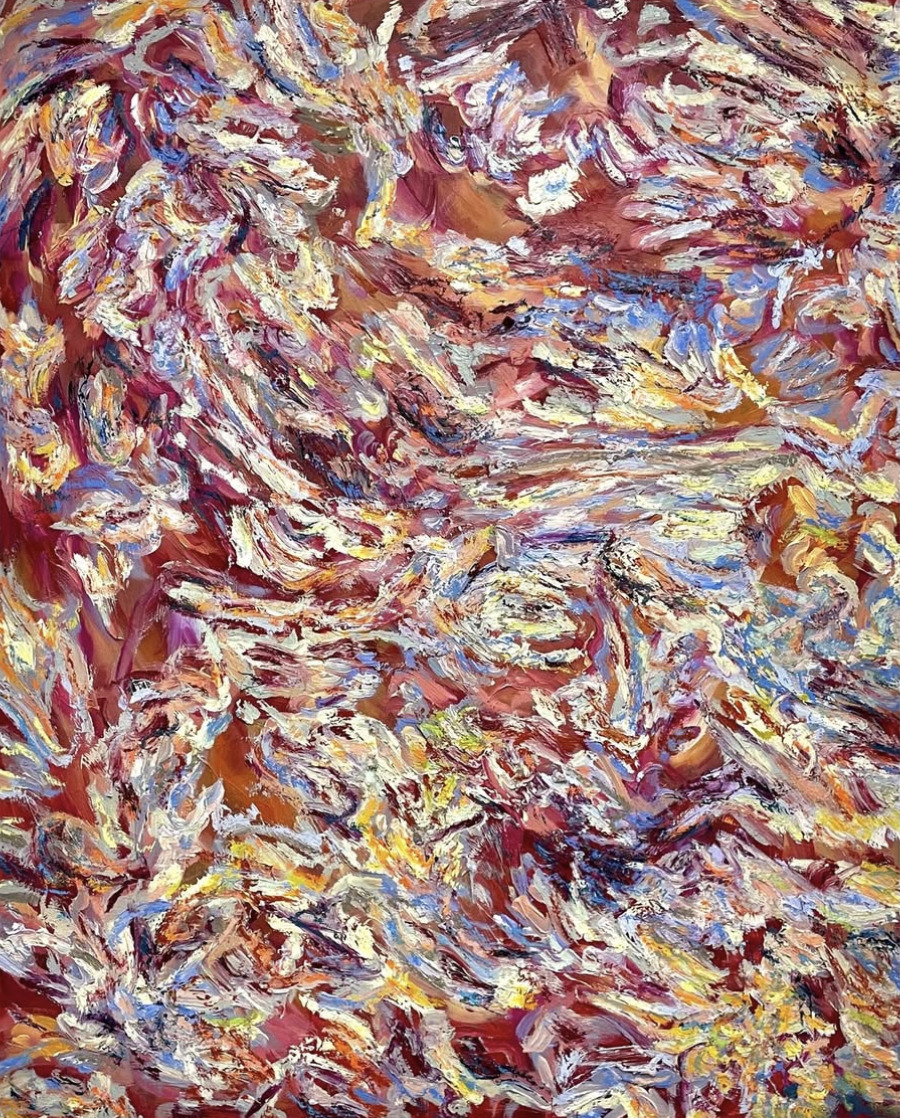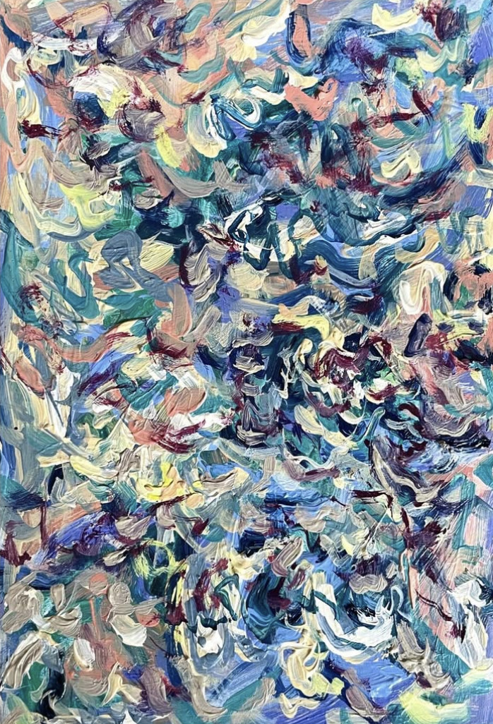 Divya Balivada (Goa, India) is an Indian artist based between Goa and London. A recent graduate of the Royal College of Art, where she completed her MA in Painting, she was shortlisted for the Jaguar x RCA Prize 2025 and has exhibited internationally, including receiving the Women’s Achiever Art Award 2024 in Goa. Formerly trained as a dentist, Balivada approaches painting as a necessity—an instinctive mode of survival and presence. Informed by lived experiences of PTSD, gender bias, displacement, and generational trauma, her work embraces painting as a vast, fluid space capable of holding human intensity. Through recursive, bodily gestures that oscillate between compulsion and meditation, her paintings become accumulative records of endurance, healing, and reclamation.