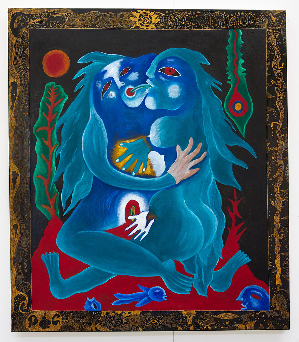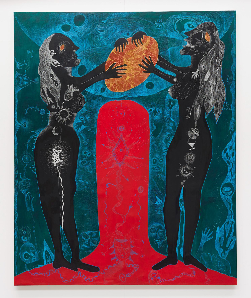 Efrat Merin is a London-based artist and graduate of the Royal College of Art (MA Painting) and Turps Art School. Her practice merges lesbo-futuristic and Judeo-futuristic mythologies, employing a distinctive sgraffito technique developed through her experimentation with cold wax encaustic paint, where layered surfaces are scratched back to reveal concealed imagery beneath. Through this archaeological process of excavation and exposure, Merin creates works in which anthropomorphic female figures inhabit liminal spaces between birth and decay, embodying themes of desire, oppression, and liberation. In 2024, she was awarded the Arts Council England DYCP grant; in 2023, she received an a-n Artist Bursary and was selected for Bloomberg New Contemporaries; and in 2022, she won the Darbyshire Award for Emerging Art.