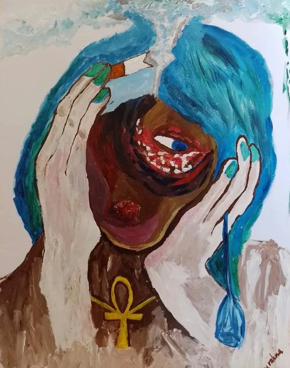 Esra Rahma is a Sudanese painter and researcher based in Kampala, Uganda, whose work explores memory, social justice, and the human experience. Using acrylics and pen, she creates paintings that capture emotion and reflect on how life’s circumstances shape personal and collective memory. Rahma’s practice investigates the memory of place, post-colonial narratives, and the intersections of the humanities and memory studies, asking how external crises and societal change affect our sense of self and connection to the world. Through her art, she fosters dialogue around social protection, resilience, and the restoration of human relationships with place and life.