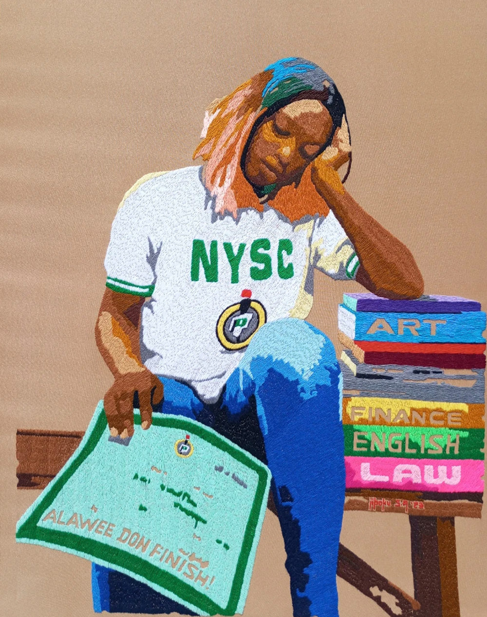 Jiboku Segun Adebayo is one of Nigeria’s contemporary artists. Hailing from Abeokuta, Ogun State. He started his art career at the Federal College of Education, Abeokuta, Ogun Sate, where he specialized in painting and textile design before proceeding to Obafemi Awolowo University, Ile-Ife, Nigeria where he obtained Bachelor in Arts and Master in Fine and Applied Arts with a major in Textile design. He is known for his unique style that combines traditional African motifs and textures with modern artistic techniques. His work often explores themes of identity, culture, and social issues in Nigeria. Jiboku’s art has been exhibited at prestigious galleries and art events in Nigeria and beyond. He has received critical acclaim for his bold and vibrant use of color, intricate patterns, and powerful storytelling through his paintings and textile designs. Overall, Jiboku Segun Adebayo is a talented and passionate artist who continues to make a significant impact on the Nigerian art scene with his thought-provoking and visually stunning creations.