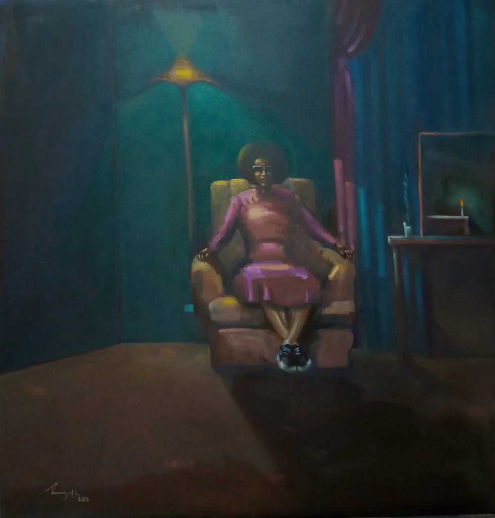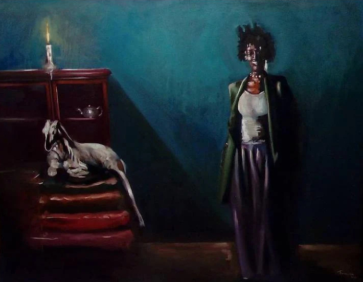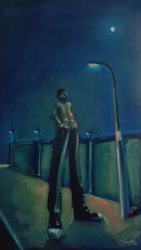 Jimmy Kitheka is a Kenyan contemporary artist based in Ngong whose evocative paintings explore nostalgia, identity, and cultural memory. Working primarily in blue and sepia tones, he creates atmospheric compositions that recall the vintage soul of Nairobi, drawing inspiration from old photographs, postcards, and inherited memories. Blending figuration with narrative elements, Kitheka’s work reflects on the city’s past while engaging with broader themes of belonging, social change, and human connection. Through his reflective visual language, he offers a poetic meditation on how history and memory continue to shape contemporary African life.