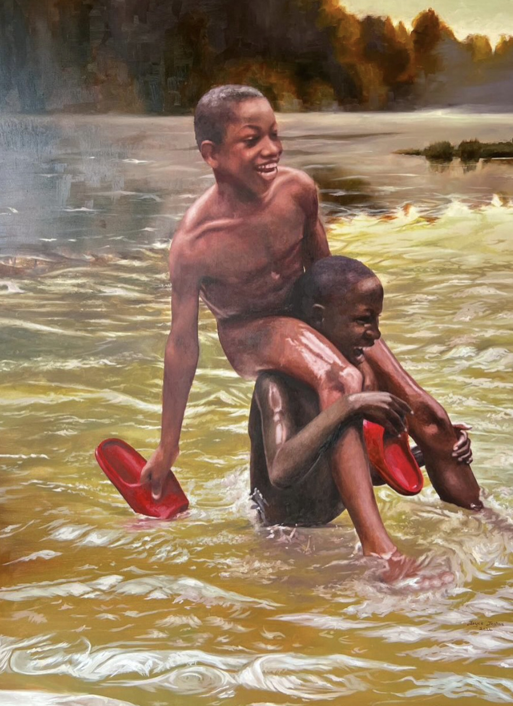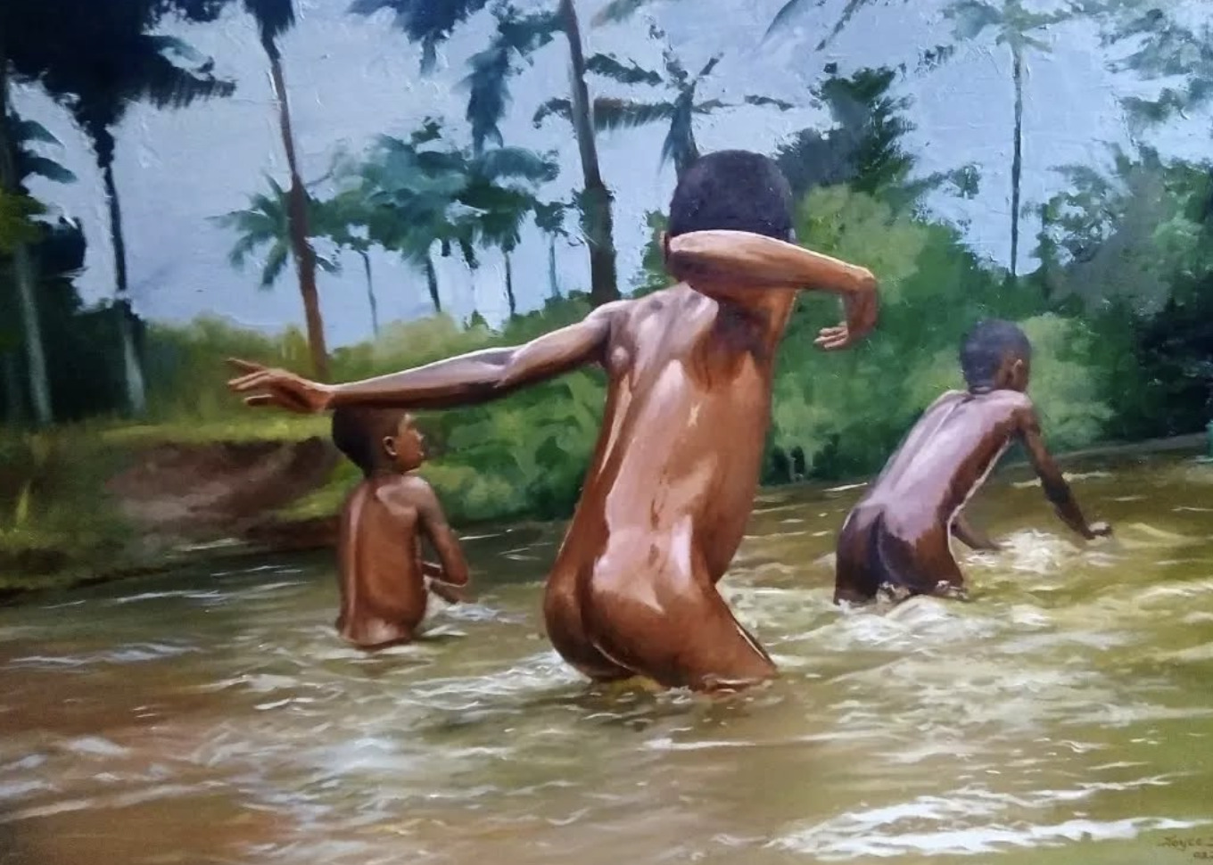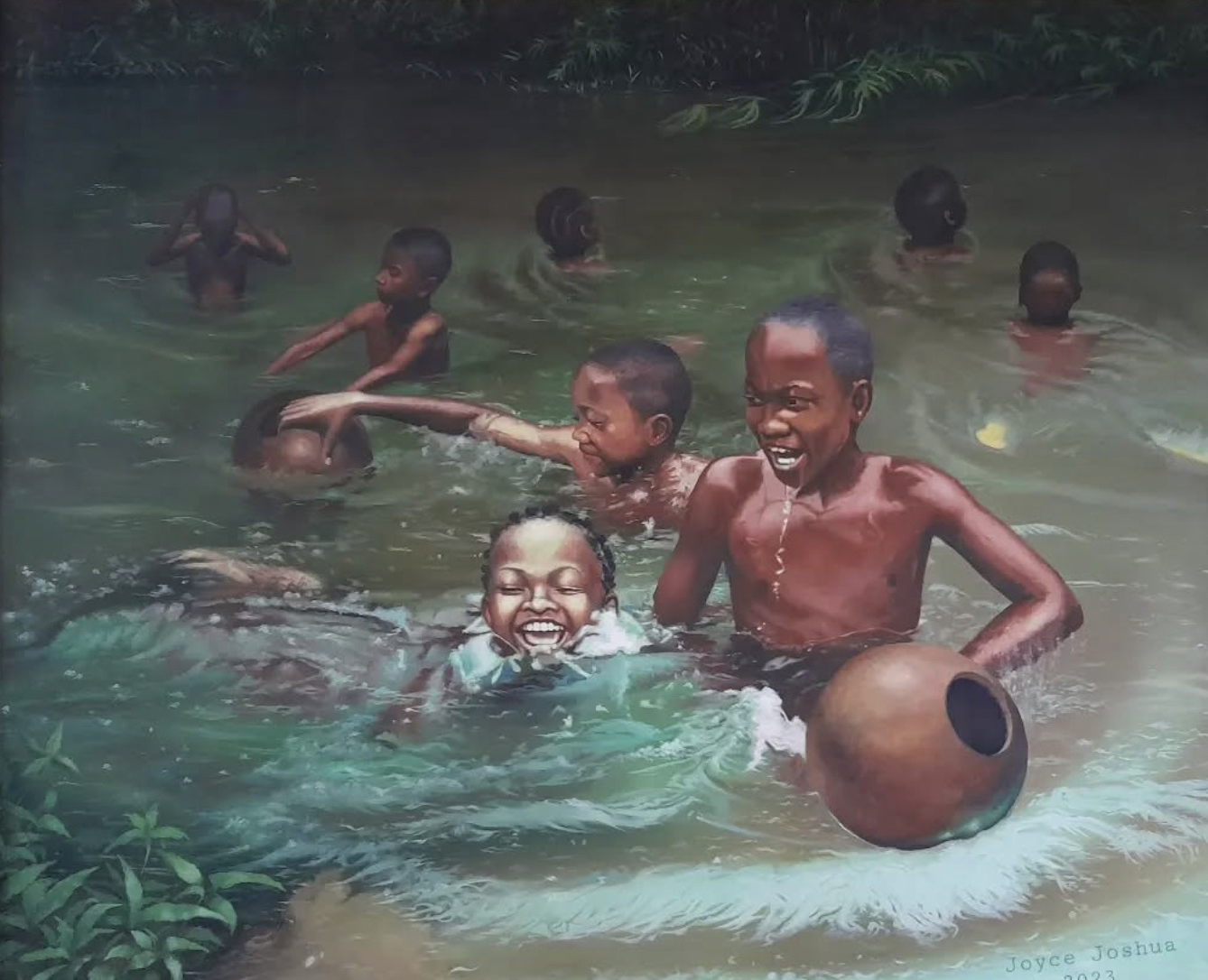 Joyce Joshua is a Nigerian visual artist whose work is deeply rooted in personal memory and emotional reflection, particularly experiences shaped by childhood. Her paintings linger on moments of innocence and quiet introspection, rendered in warm, earthy tones that evoke nostalgia and intimacy. Through tender portrayals of children engaged in simple, everyday activities, she captures the purity, curiosity, and wonder of youth, subtly contrasting these fleeting states with the layered complexities of adult life. Guided by a sensitivity to storytelling through emotion, Joyce uses color, composition, and gesture to create serene yet contemplative narratives that invite viewers into spaces of familiarity and stillness. Her practice serves as a gentle meditation on the beauty of simplicity and the enduring essence of human connection.