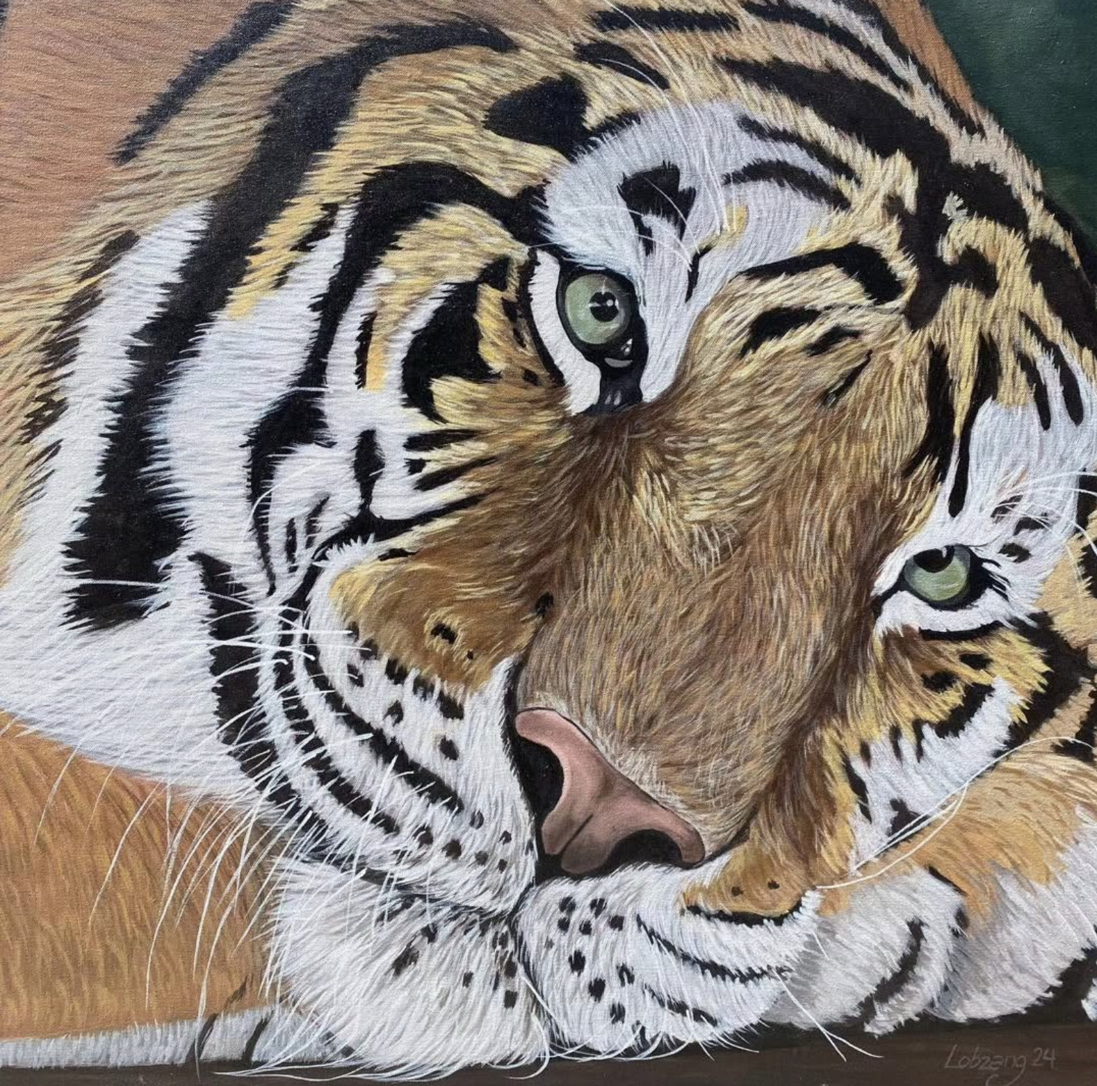 Lobzang Zangpo (Lobu) (b. 1995, Thimphu) is a multidisciplinary Bhutanese artist whose creative journey began at VAST Bhutan, where what started as a way to pass time soon became a life-changing passion. Encouraged by a supportive community, Lobu discovered a deep love for painting that led him to pursue formal training in the arts. In 2019, he graduated with a BA in Visual Arts from Beaconhouse National University in Lahore, Pakistan, on a scholarship facilitated by VAST. His work spans painting, photography, sculpture, and sketching, reflecting a dynamic and evolving practice. Deeply inspired by Asha Kama, Lobu sees art not just as a medium of expression, but as a way of life and connection.