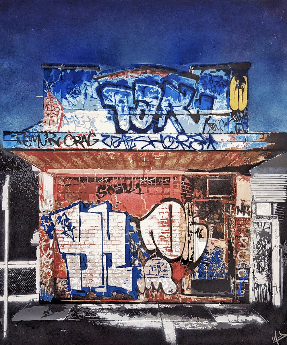 Logan Moody is a New Zealand–born stencil artist based in Melbourne, Australia, whose work bridges realism and urban commentary through a highly meticulous, process-driven practice. Rooted in the visual language of the city, his compositions draw inspiration from Melbourne’s sprawling urban environment, reflecting on everyday life and uncovering moments of quiet significance within the mundane. Moody’s labour-intensive stencil technique functions as both craft and meditation, emphasising patience, precision, and a continual push against the perceived limits of the medium. Alongside his engagement with the built environment, his work also addresses themes of sustainability and personal responsibility, underscoring the urgency of conscious living in a rapidly changing world. He has been exhibited multiple times as a finalist in the Stencil Art Prize in Sydney, along with selections in numerous other art prizes.