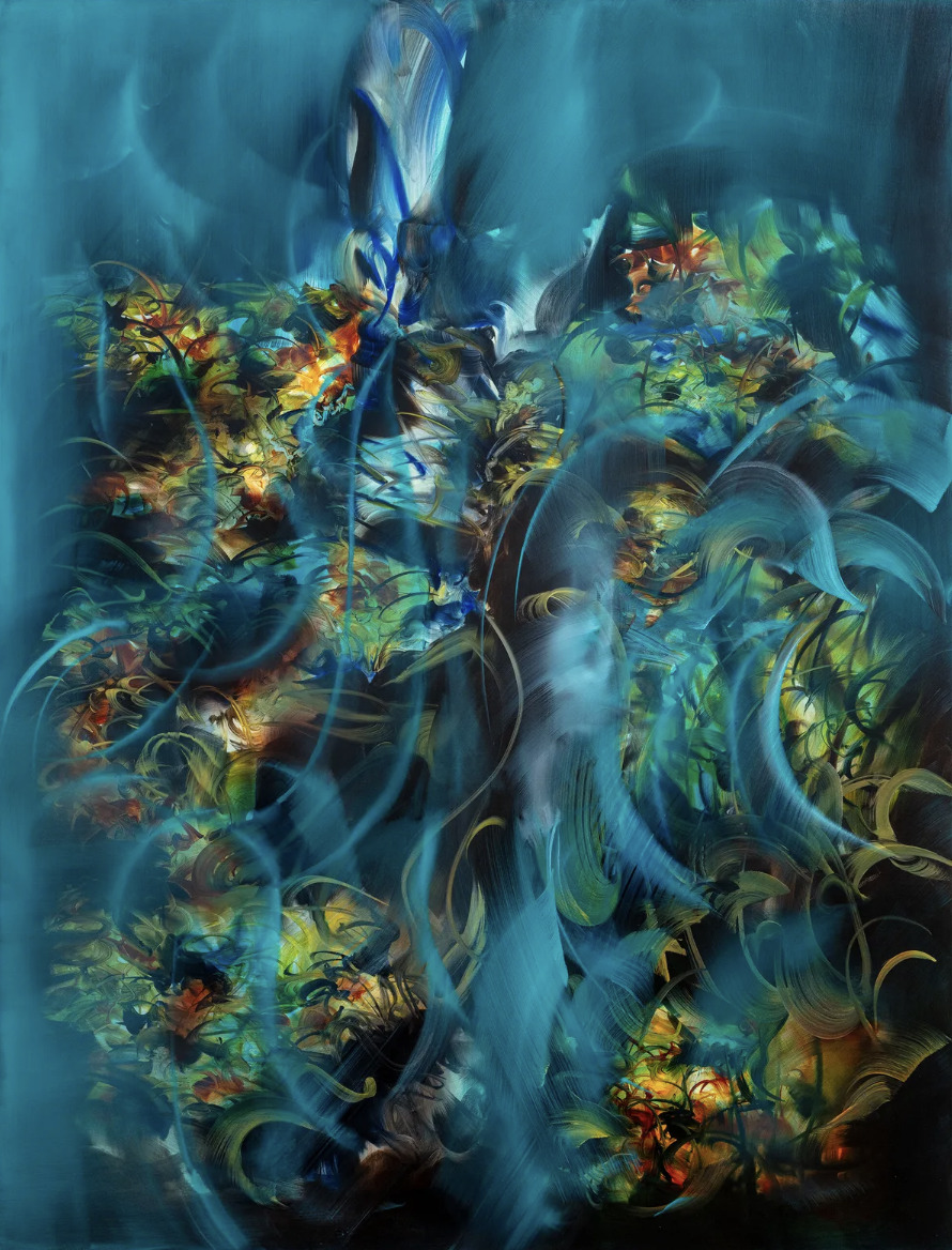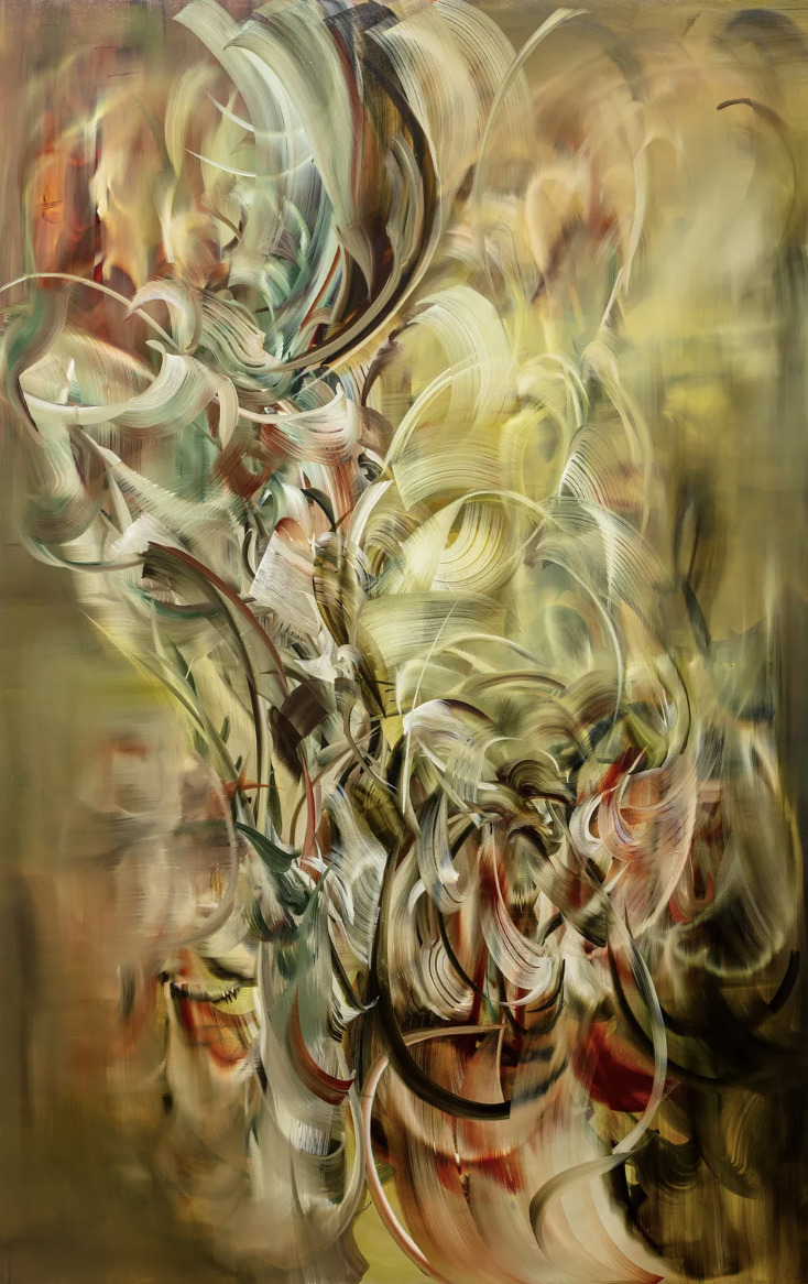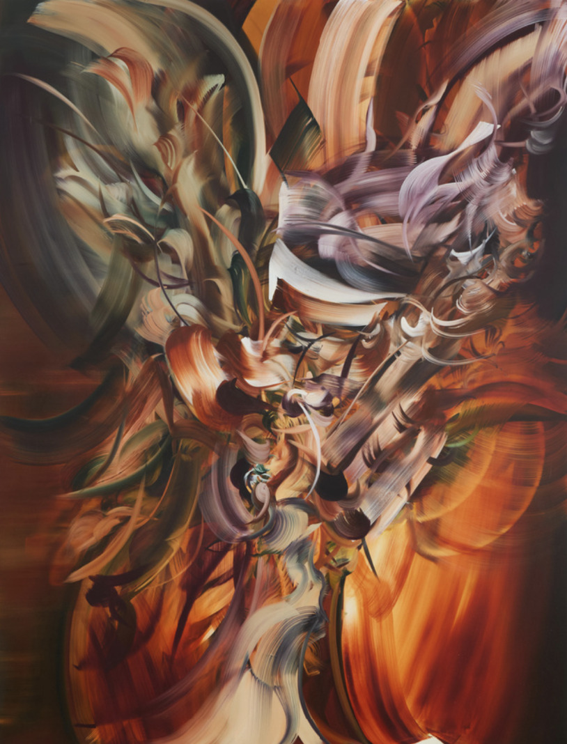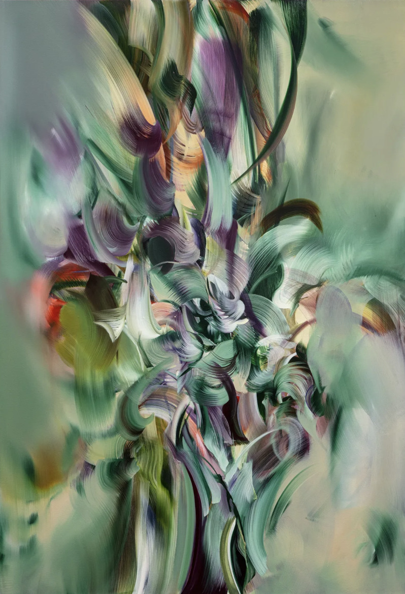 Lydia Makin is a contemporary painter whose dynamic practice is characterized by energetic, large-scale compositions that pulse with movement and intensity. She holds a BA in Fine Art from the Slade School of Fine Art and an MA from the Royal College of Art, where she developed a distinctive visual language shaped by spontaneity and experimentation. Drawing inspiration from the dramatic compositions of Old Masters such as Caravaggio, Raphael, and Goya, Makin reinterprets these influences through a contemporary lens, creating works that evoke a sense of frenetic, almost cellular vitality. Her work has been exhibited internationally, including in London and Miami, with presentations at Studio West, Gallery Rosenfeld, and PM/AM, where she also completed a residency, and she has received several awards including the Painters’ Stainers’ Company Scholarship and the Richard Ford Award.