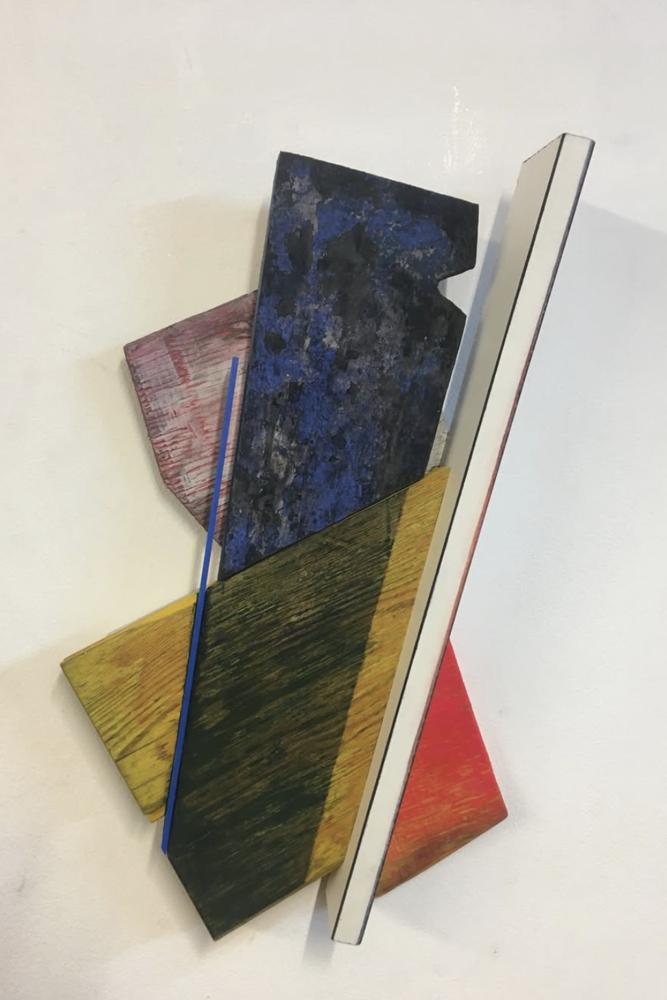 Max Sheppard works primarily with wood found on local beaches and marshland, incorporating additional materials such as plastics and metal to construct wall-based reliefs. His practice produces abstract, boxy, and angular compositions that draw loosely from architecturally inspired drawings, with an emphasis on form, structure, and the inherent conditions of his chosen materials. Working in a methodical yet intuitive manner, Sheppard limits pre-planning, allowing material qualities—shape, texture, and surface degradation—to guide the development of each piece. Paint and other media are applied selectively, with varying levels of coverage, to establish tonal balance or deliberate contrast between natural and man-made elements. His work explores the intersection of architecture, construction, and material chance, where process and adaptation are as significant as composition.
