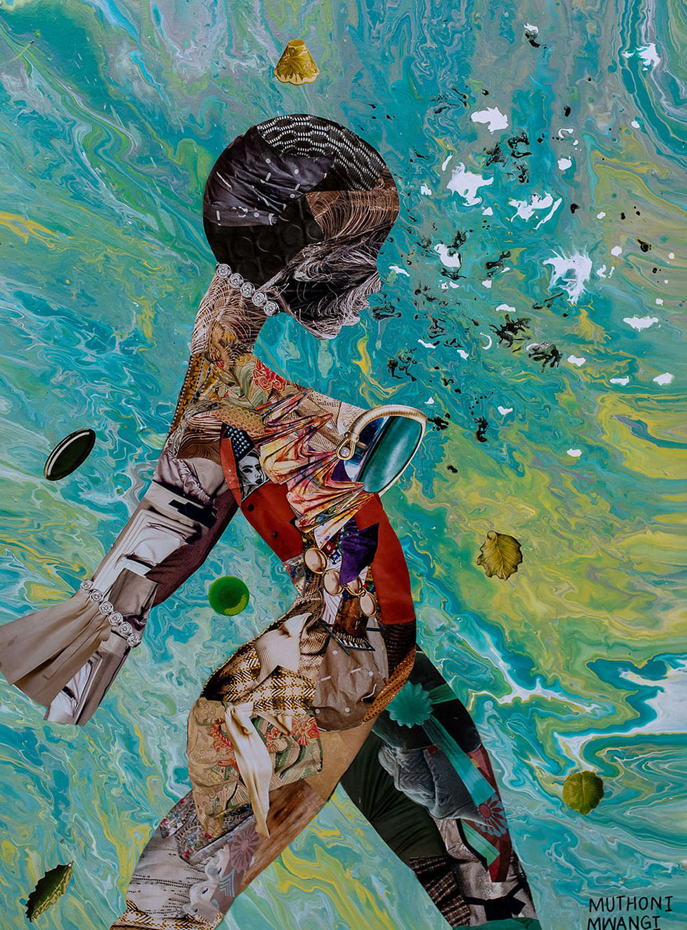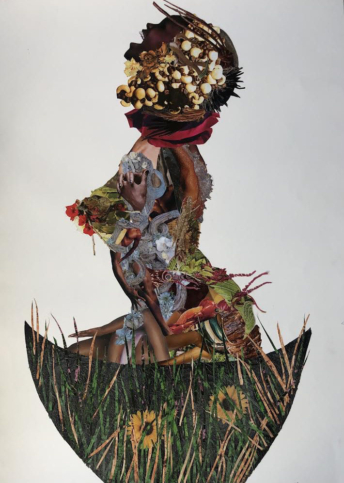 Muthoni Mwangi is a Nairobi-based visual artist whose intuitive collage practice explores womanhood, mental health, and human connection. Beginning her artistic journey during the COVID-19 pandemic after working in law, she experimented with various mediums before finding freedom and fulfillment in collage. Working from her studio at Kobo Trust, she creates layered compositions using magazine cutouts, fabric, and personal imagery, guided by intuition and spirituality. Her works center women and reflect personal experiences that speak to shared emotional truths. Mwangi has participated in group exhibitions including Shifting Tides at Kobo Trust and Unbound at Village Market in Nairobi.
