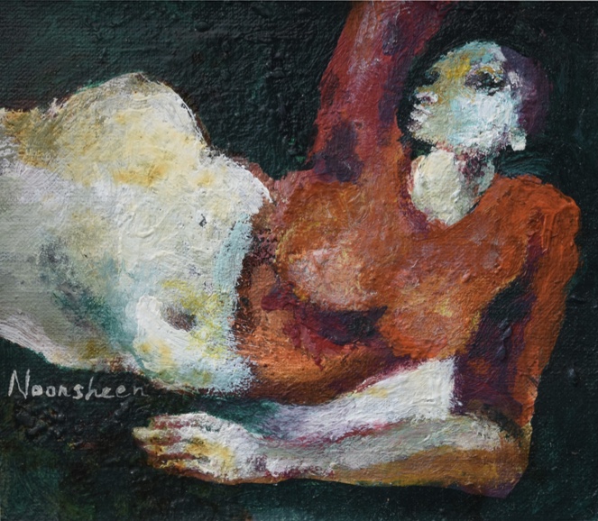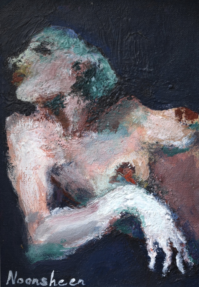 Noushin Delfani is an Iranian visual artist whose practice spans painting, graphic textile design, and sculpture. She earned her B.A. in Graphic Design from Art University in 2007 and her M.F.A. in 2016. Since 2010, painting has been central to her daily life and creative journey, serving as a tool for reflection and self-understanding. Her work draws from personal experiences as a Middle Eastern woman, exploring identity, memory, and cultural complexity through a dialogue between figuration and abstraction. Self-portraiture often becomes a space for processing difficult emotions, with some works left unfinished — each holding its own meaning. Delfani’s art embodies both personal vulnerability and critical engagement, inviting viewers to encounter the body as a site of transformation and lived experience.