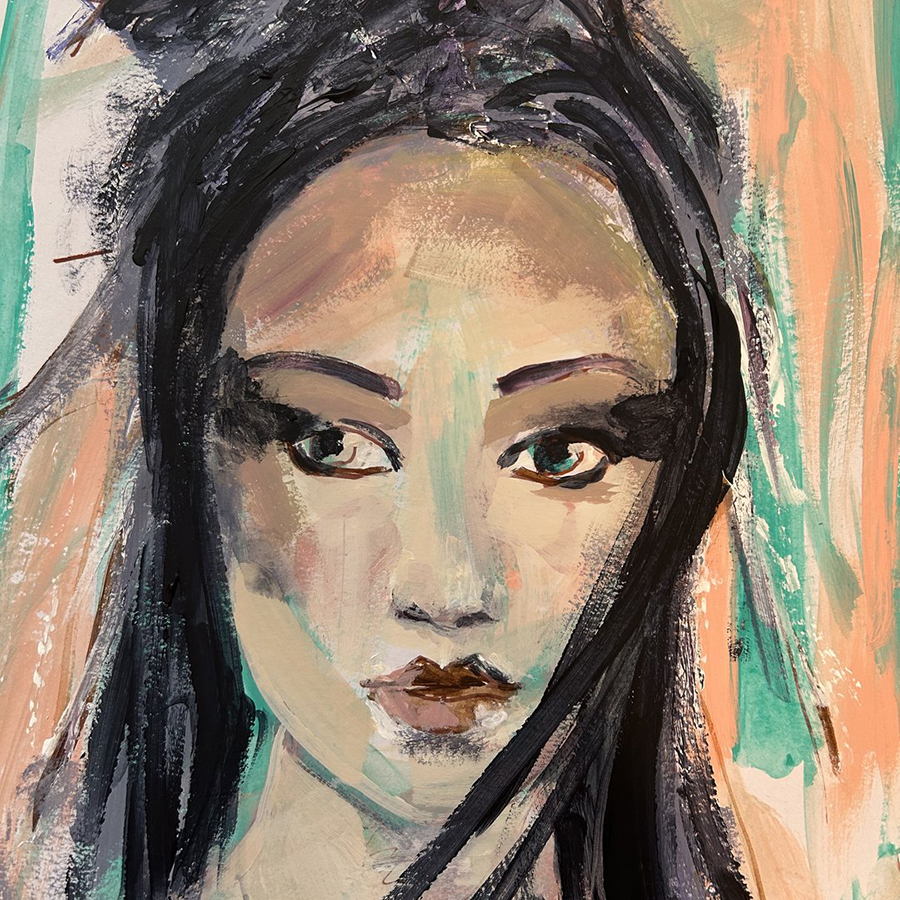 Tina Kunst is a full-time portrait painter based in Idaho, USA, whose vibrant acrylic works, sculpted busts, and poetry explore the delicate boundary between the seen and the unseen. Inspired by the shifting skies outside her window, she creates expressive, myth-infused portraits that capture fleeting moments of emotion, contemplation, and abstract thought. Her creative process moves fluidly between analytical precision and intuitive freedom, allowing each piece to emerge from a meeting point of intellect and feeling. Through layered applications of dark and light paint and gesso, Tina evokes depth, mystery, and emotional resonance revealing what lies behind the veil and inviting viewers into richly textured inner worlds shaped by wonder, curiosity, and the quiet truths of human experience.