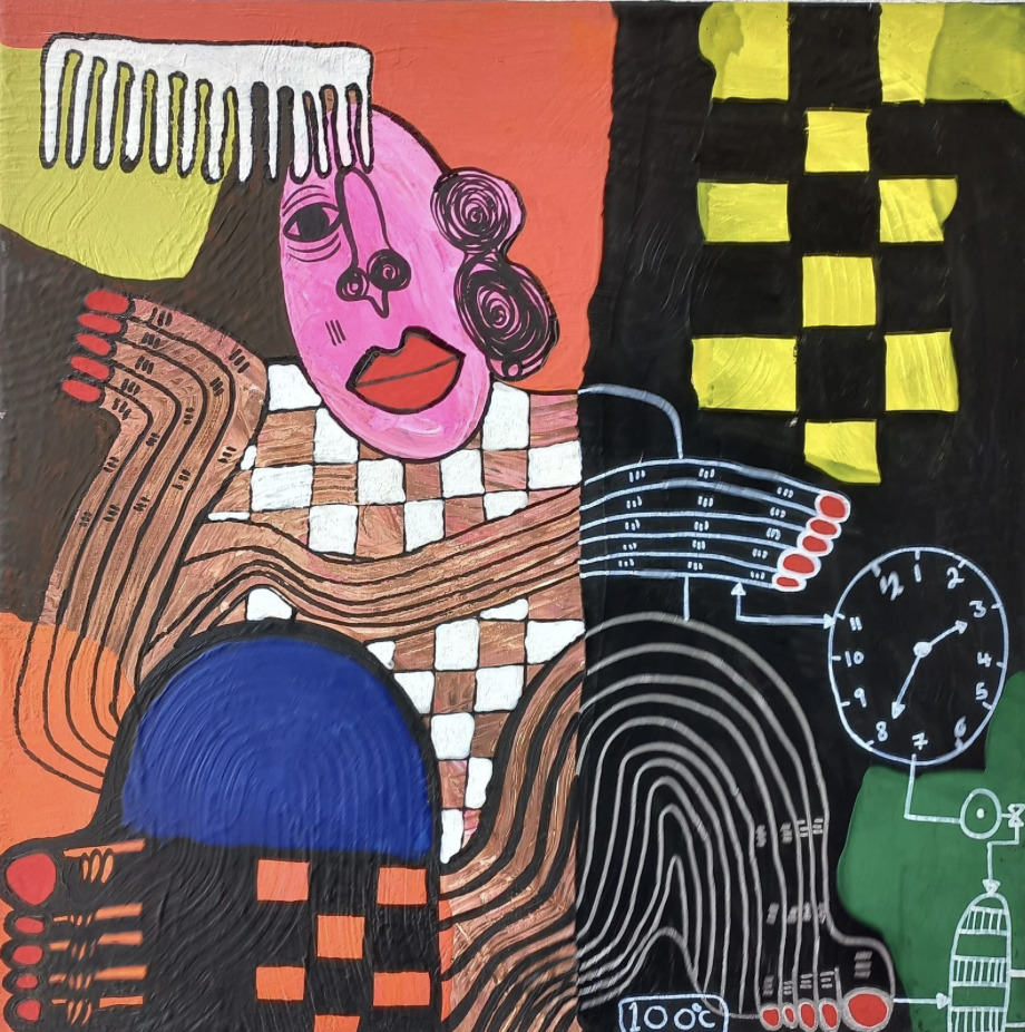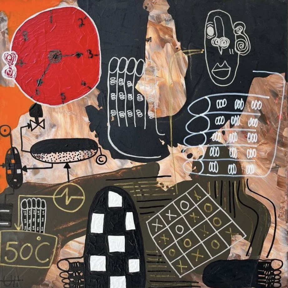 Usra Hamza is a self-taught Sudanese artist who began her artistic journey in 2014 as a path toward self-discovery and emotional expression. Working primarily in mixed media, she creates deeply personal works that reflect her inner dialogue with the world, combining bold lines with rich, layered colours. For Usra, art is an act of liberation—a space for honesty and vulnerability where intangible feelings take visual form, capturing the complexity of human experience. She has participated in numerous regional and international exhibitions, including shows in the UAE, Uganda, Kenya, and Sudan.