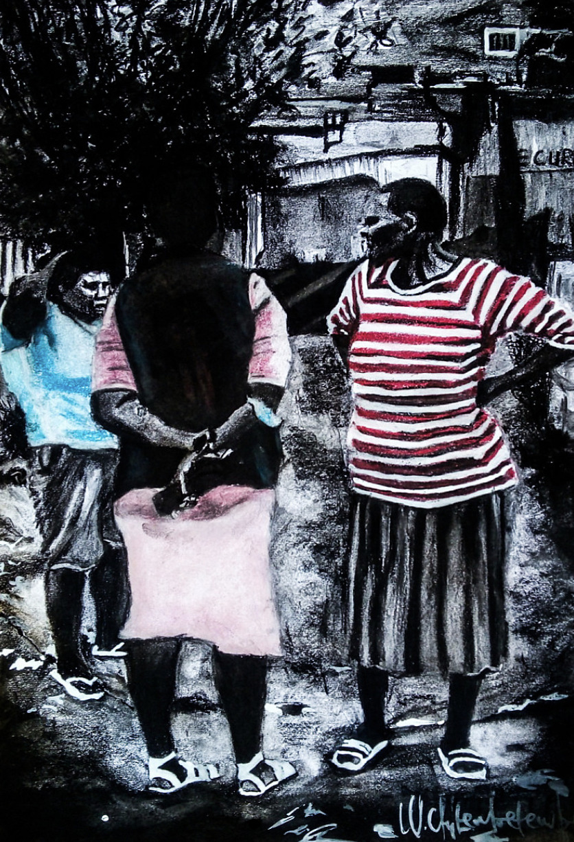 Born in Zimbabwe in 1996 and currently based in South Africa, Wisdom Chitembetembe is a self-taught visual practitioner whose work is deeply rooted in lived experience and community narratives. Working primarily on paper, he uses drawing and painting with charcoal, oil pastels, and mixed media, combining monochrome and vivid palettes to depict everyday life in South African urban spaces with vulnerability and optimism. His practice functions as both personal testimony and collective storytelling, reflecting the emotions, struggles, and resilience of the people and environments that surround him. Through bold visual language and intimate compositions, he seeks not only to express his own journey but also to educate, inspire, motivate, and uplift, fostering empathy and connection while celebrating the beauty and complexity of the human spirit.