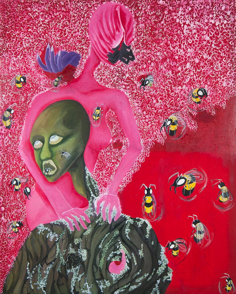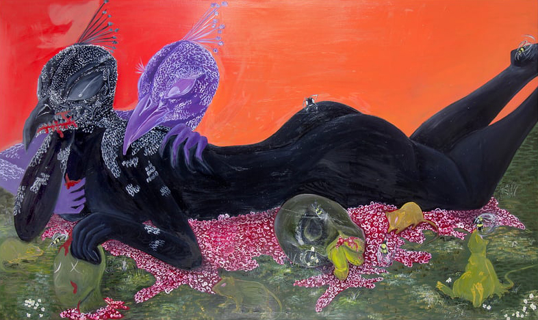 Zama Mwandla (b. 2000, Newcastle, KwaZulu-Natal) is a Johannesburg-based surrealist painter and sculptor whose bold, narrative oil paintings confront the psychological aftermath of rape and the complexities of healing. Drawing from her own lived experience, she creates fantastical yet visceral worlds inhabited by hybrid figures that symbolize trauma, rage, and recovery. Influenced by Baroque art, Japanese erotic art, and psychological anime, her work offers both solace and provocation, compelling viewers to face the realities of gender-based violence. Mwandla holds a BAFA (Hons) from the University of the Witwatersrand and has exhibited locally and internationally, including African Feminisms (Afems) (2019) and the 54th Art & Antique Fair in Salzburg (2023). Her works are held in collections such as the Schuetz Art Museum (Austria) and the Amawal Collection (Spain).